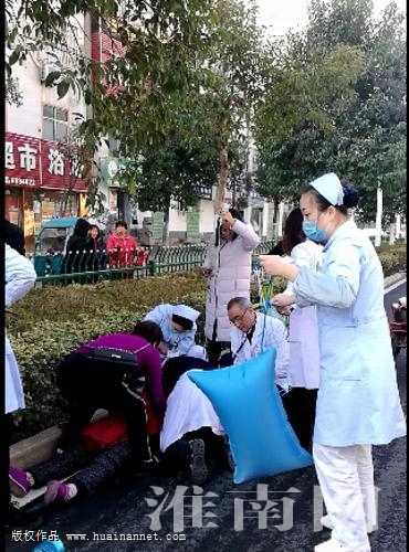 近日上午,市長熱線員工楊娜娜在家人陪伴下前往田家庵區公園街道社區衛生服務中心進行常規產檢。剛檢查結束走出醫院大門,就看見綠化帶旁一中年女子在大聲呼救,楊娜娜和其家人急忙上前,發現一老人暈倒在社區醫院附近的綠化帶邊,不省人事。聞訊而來的社區醫院醫護人員查看病情后,立即進行靜脈注射和心肺復蘇等急救措施,告知患者家屬趕快撥打120急救電話。由于出門比較急,女子出門未帶電話,楊娜娜家人見狀立即掏出手機幫其撥打120,而楊娜娜此時也加入救助行列。她一手護住腹中的孩子,一手高舉著吊瓶,直到家人打完電話換下她。數九寒冬,路面濕滑,社區醫院醫護人員已無暇顧及,跪在冰冷地面持續進行心肺復蘇急救,其中一位女醫生因體力不支,險些昏厥過去,但依然不放棄搶救。時間一分一秒過去,120急救車因醫院附近道路施工等原因,直到20分鐘后才過來,而四周圍觀群眾則自發結隊攔住對向車輛,以便救護車順利到達,為患者爭取更寶貴時間。
