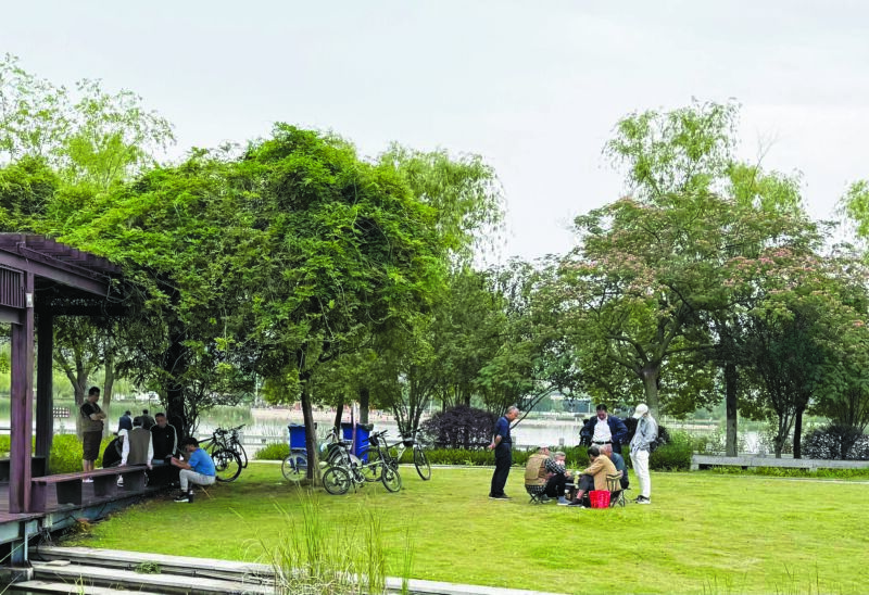 端午假期,公園、游園成了眾多市民休閑首選地,在這里,大部分市民都能做到文明游園,但還會出現用過的紙巾被隨意丟在長椅上、單車停放在草坪上等不和諧畫面,與美景格格不入。(記者 攝)