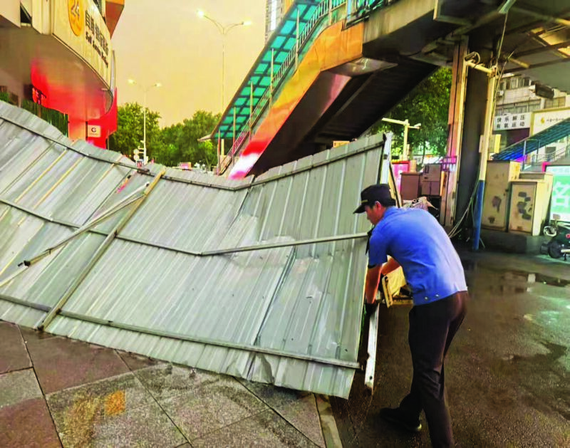 (記者 張明星 攝影報道)據氣象部門最新預報,6月18日起,我市將迎來持續性強降水過程,其中19日至20日降水最為集中,期間或伴有雷暴大風、短時強降水等強對流天氣。為有效應對即將到來的惡劣天氣,全力筑牢城市安全屏障,田家庵區城市管理局全面啟動戶外廣告招牌設施安全隱患排查整治行動。該局密切監測天氣變化,強化預警研判,細化工作部署,最大程度降低極端天氣帶來的不利影響,為市民打造安全、舒適的生活環境。