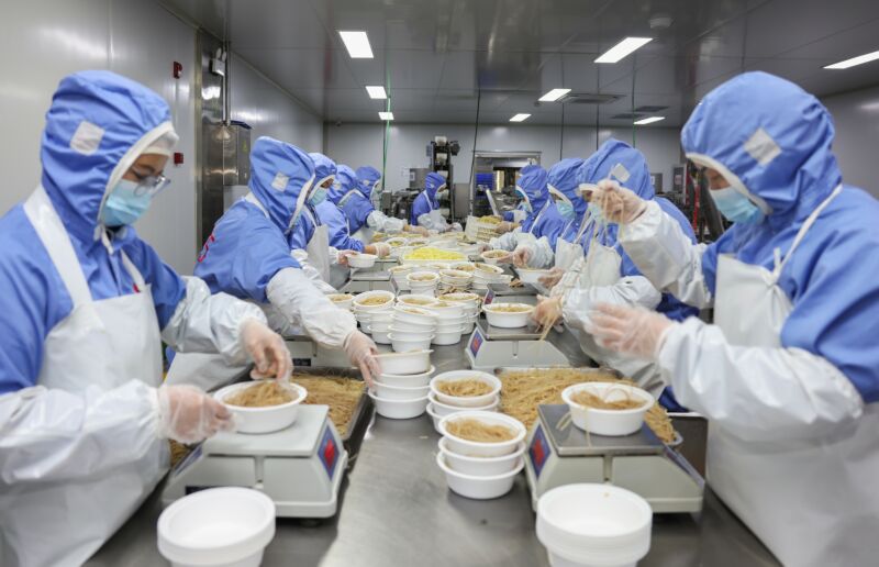 近日,安徽旭咚食品科技有限公司車間內工作人員身著規范工裝,專注于流水線上的作業。水中漂浮的包裝產品正是旭咚食品生產的橘生南淮南牛肉湯湯包,正歷經水浴降溫工序,從八公山走向更廣闊市場。作為本土食品企業代表,旭咚公司產品以標準化生產為根基,將八公山食材特色融入生產全流程,在保障食品安全與品質的同時,為區域產業注入活力,為八公山食品產業創新升級書寫新篇章。