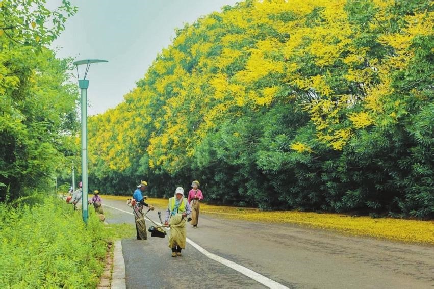 欒樹花開了,它一只腳留在了夏天,一只腳邁進(jìn)了秋天。特別喜歡欒樹花,因?yàn)槔寺那锾鞆臋铇浠ㄩ_始。細(xì)碎的金黃綴滿了枝頭,秋風(fēng)拂過,滿地黃金,愛了愛了……      本報(bào)通訊員徐金陵攝