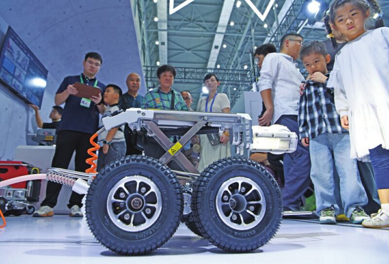 圖一:9月20日,2025世界制造業大會現場,觀眾觀看淮南和億德科技有限公司管道檢測機器人演示。