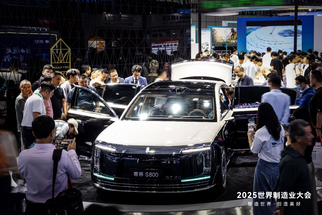 大會外展區域,尊界S800驚艷亮相排面拉滿,未來感十足的設計語言與與生俱來的豪華氣場相得益彰,瞬間成為全場視覺核心。流線型車身勾勒出優雅身姿,星輝點綴的細節彰顯匠心,每一處設計都詮釋著 “超豪華” 的定義。