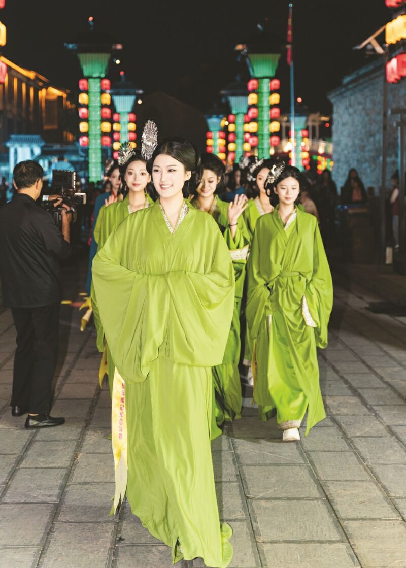 磚石斑駁的古城墻上,一群身著戰國袍的佳麗裊裊走過,千年車轍深深的青石板路與現代時尚氣息交織,仿佛完成了一場穿越時空的對話。