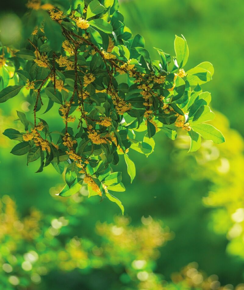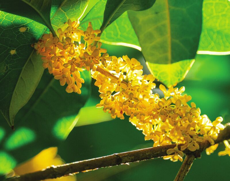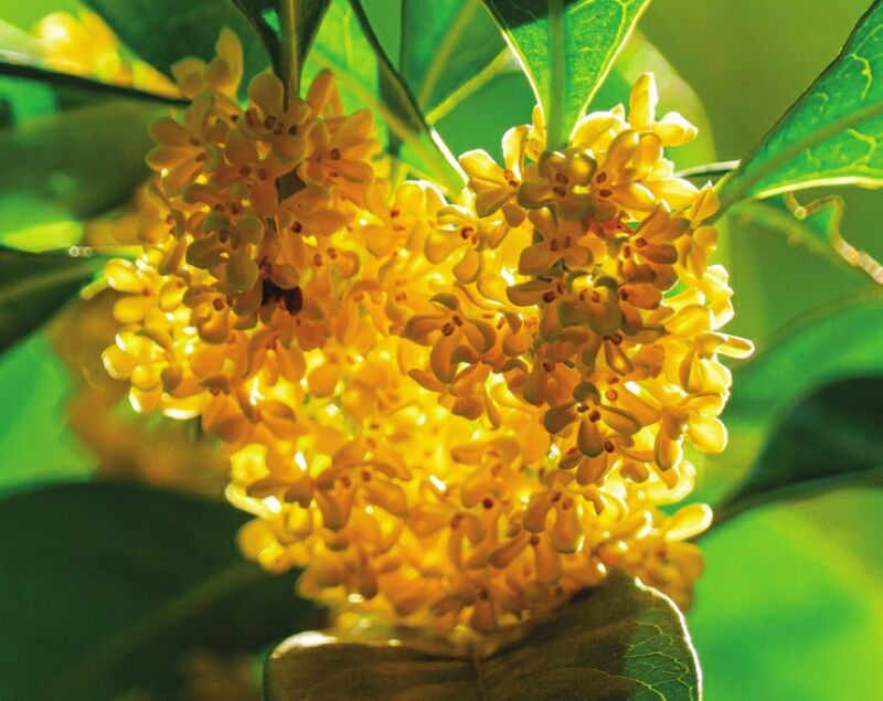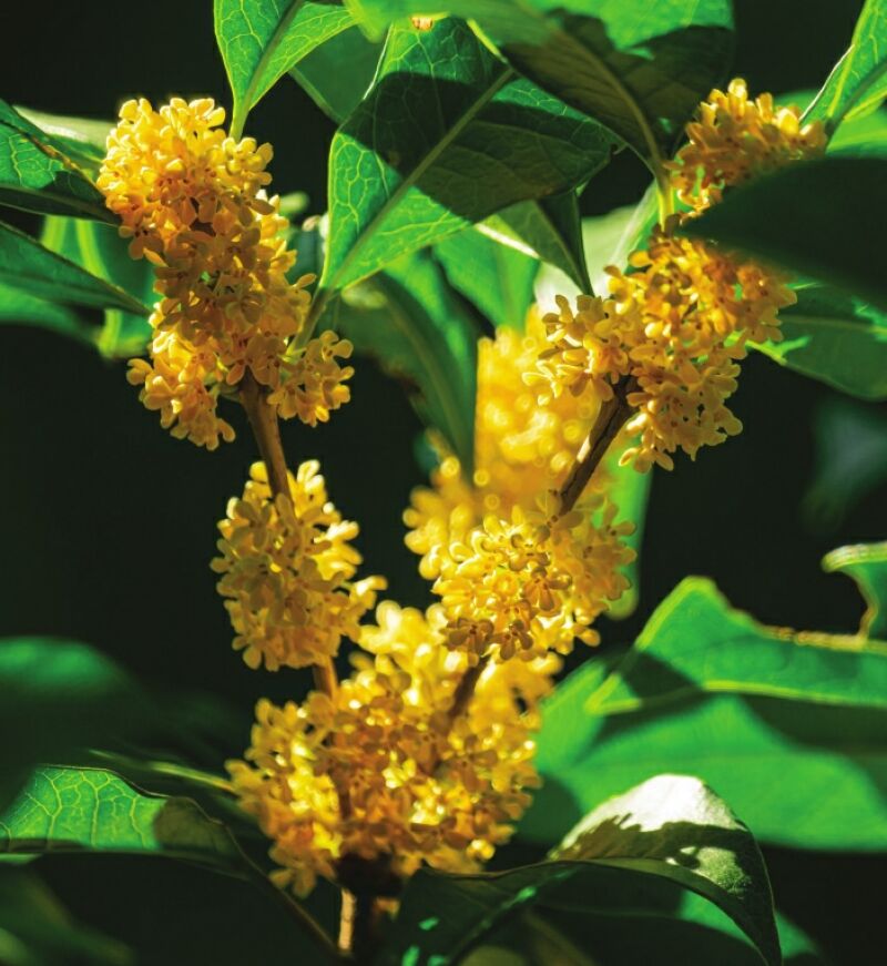 淮南的秋分“花代”——桂花又名木樨,是木樨科木樨屬常綠喬木或灌木。桂花成簇綴于綠葉之間,花瓣僅米粒大小,卻薄如蟬翼,在陽光下呈現出碎金質感。桂花香氣穿透力強,彌漫在秋日空氣中,能夠香飄十里;茨显灾补饦錃v史悠久,北宋樂史《太平御覽·木部》引東漢王逸《楚辭章句》:“漢淮南王安,好道,感八公,共登山攀桂樹。安作詩曰:攀桂樹兮聊淹留。”劉安所作即《招隱士》,詩中吟詠了八公山幽谷中的桂花。唐代詩人李白癡迷淮南桂,兩次來淮南,四次賦詩贊淮南桂樹、桂枝和丹桂。如今淮南遍植桂樹,媒體報道過的秋分賞桂勝地有八公山、舜耕山風景區、壽縣新城區、焦崗湖、大通濕地公園、龍湖公園、人民公園、老龍眼濕地,為此特將桂花確定為秋分時節的淮南代表性花卉。