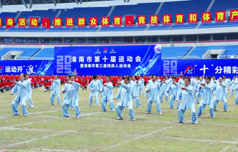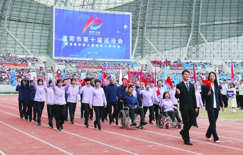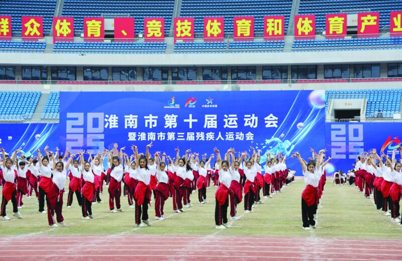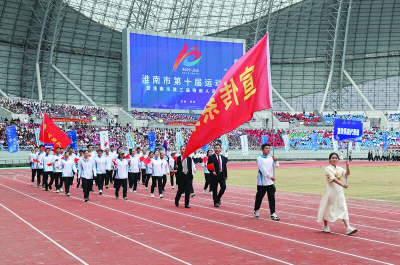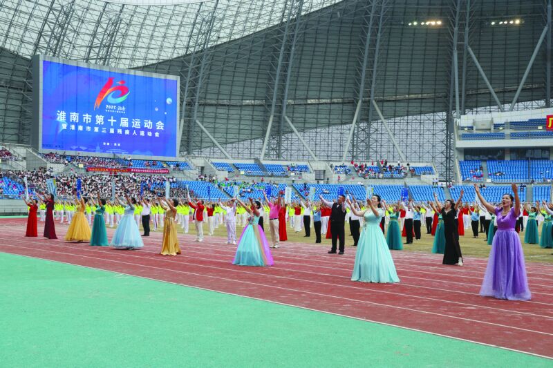 金秋時節,丹桂飄香;全民健身,全民健康。9月27日下午,淮南市第十屆運動會暨第三屆殘疾人運動會在市奧體中心激情開幕。全市10支縣區代表團,23支社會部代表團,5支中學生部代表團,殘疾人代表團,裁判員代表團及市民觀眾約2萬人參加了開幕式。開幕式還舉行了精彩的文體表演。