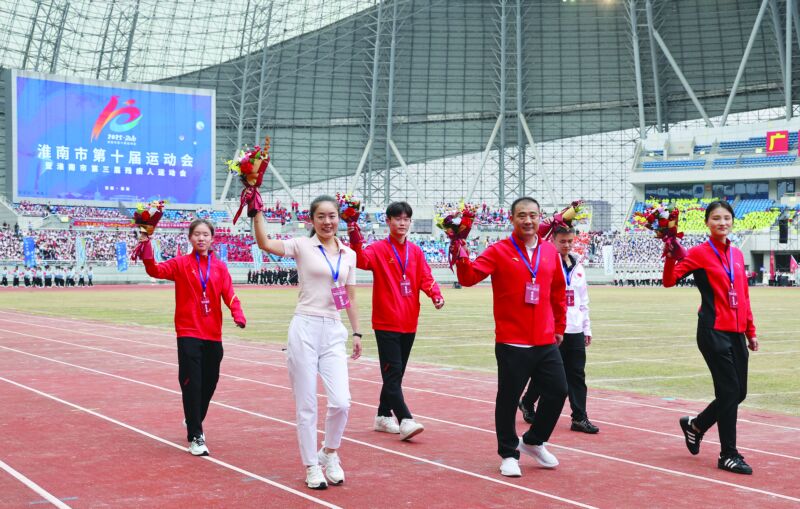 淮南籍優秀運動員代表入場。