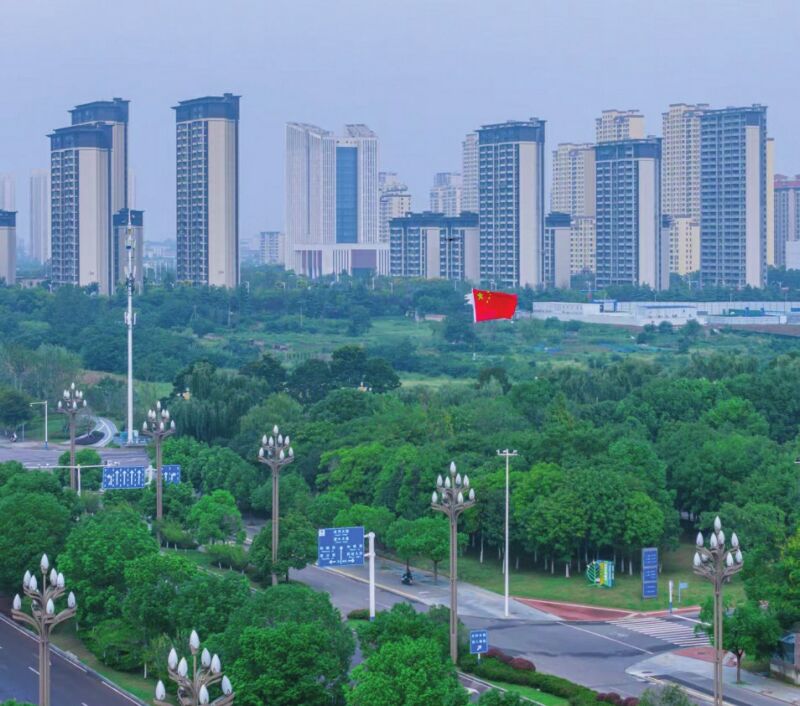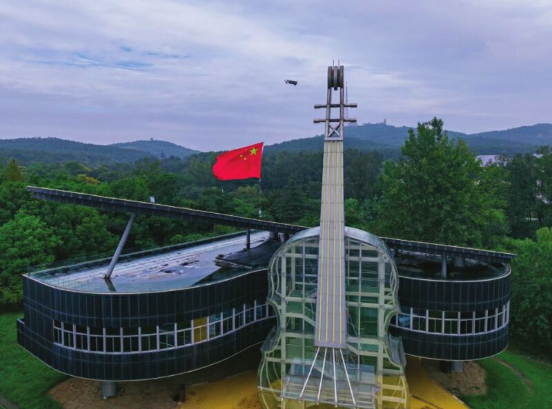 國慶佳節(jié)來臨之際,淮南延時攝影聯(lián)盟的攝影師操縱無人機,在兩琴相悅、人民公園、市政務(wù)中心等地標(biāo)上空翱翔。無人機懸掛的五星紅旗在空中獵獵作響,猶如跳動的愛國火焰。這是無人機愛好者用自己的方式在城市天空繪就對祖國母親最深情的祝福。