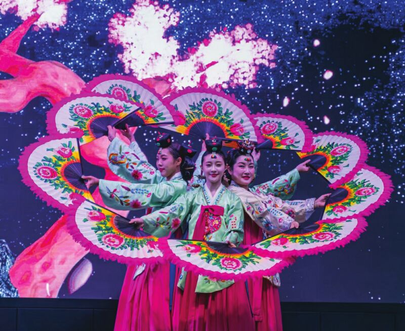10月18日,韓國江原特別自治道藝術團走進淮南春申里文旅街區,以藝術為橋,奏響文化交流和美樂章。韓國藝術家送上的《長鼓演奏》韻律悠揚,民謠《阿里郎》情深意長,《花冠舞》典雅端莊,《扇子舞》翩若驚鴻;淮南的演員帶來了少兒京劇、少兒舞蹈、花鼓燈等節目,中韓兩國表演者共同為市民呈現了一場充滿韓式風情和楚風漢韻的視聽盛宴。這場跨越山海的藝術對話,讓千年楚韻與韓流新風在淮河之濱深情相擁,譜寫了文明互鑒的動人篇章。