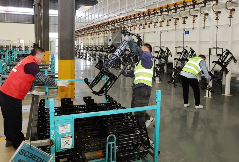 日前,位于壽縣新橋工業園的安徽泳恒科技有限公司正式運營生產。該項目依托廣州德恒智能裝備技術,在建成高標準電泳涂裝生產線的基礎上,將擴建汽車零部件智能焊接、加工與裝配生產線,實現汽車零部件制造全流程智能升級。圖為電泳車間的后排座椅骨架涂裝完成下線。