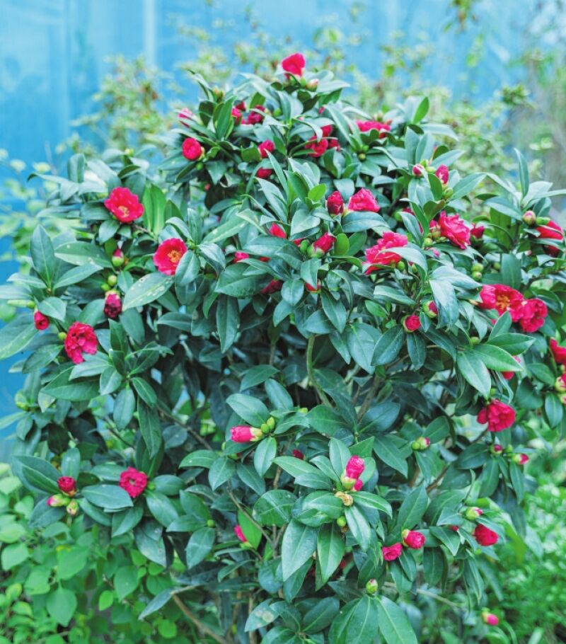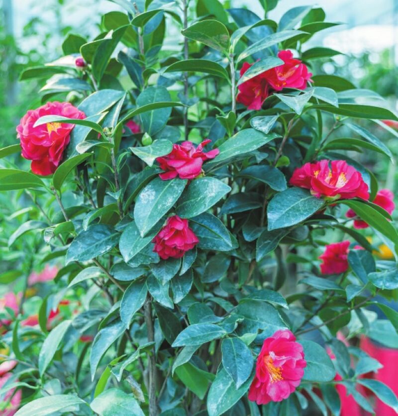 盆栽茶花養殖技巧——茶花在立冬之后持續開花,是冬季家庭盆栽的首選。盆栽茶花養殖技巧:1.土壤:按熟化紅壤土50%、木屑或食用菌渣40%、餅肥粉或牲畜糞10%的比例混合,澆水適量并發酵熟化后使用;2.光照:冬春季可接受全天日照,夏天需避免陽光直射,要將植株移到見光背陽、通風良好的環境中養護;3.溫度:茶花生長適宜溫度為18-25℃,冬季雖然耐寒,但在氣溫驟降前需將花盆移到背風向陽處安全越冬;4.濕度:茶花喜濕,春秋季每日澆水一次,夏季早晚各澆水一次,每月可澆一次0.5-1%的硫酸亞鐵水,以防土壤堿化;5.營養;根據薄肥勤施的原則,每月以腐熟枯餅水、花卉專用肥進行1-2次根外施肥,生長旺季以1-2%的植物生長素噴施葉片。