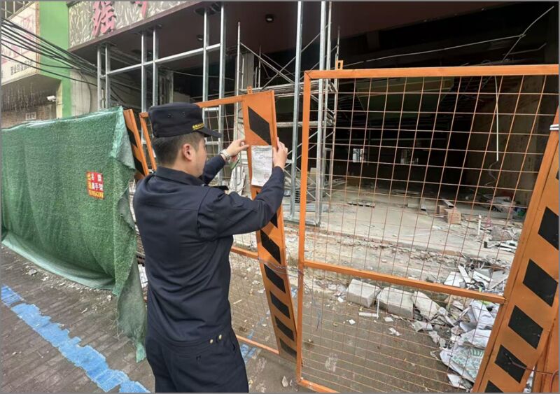 發(fā)現(xiàn)該情況后,執(zhí)法人員立即現(xiàn)場制止施工,并向該店負責人現(xiàn)場宣講違建相關(guān)法律法規(guī),明確指出其行為的違法性質(zhì)及潛在安全風險。隨后,執(zhí)法人員嚴格按照程序,現(xiàn)場完成證據(jù)固定,并依法下達責令整改通知書,要求其按期自行拆除、恢復(fù)原狀,否則將依法強制拆除。