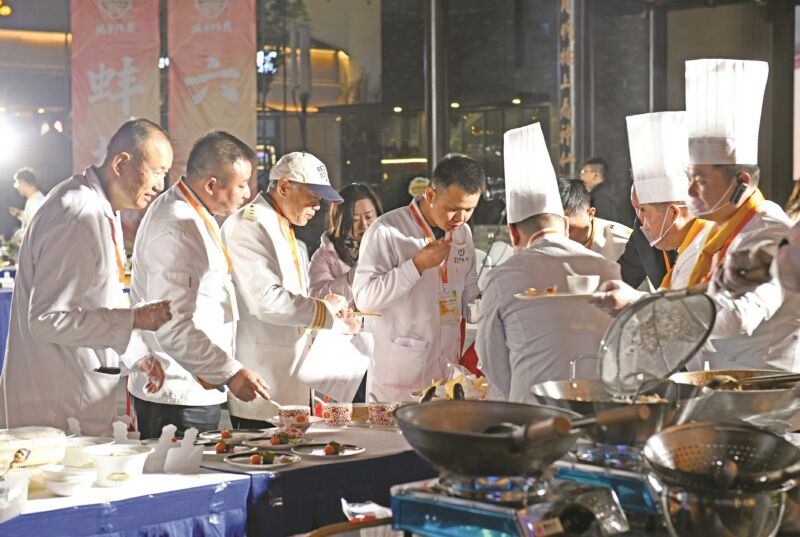 淮南主會場現場,專業評委對選手特色菜進行品嘗打分。