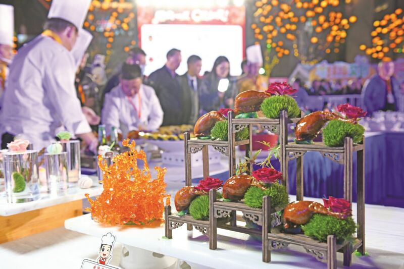 11月30日,“超級皖”美食爭霸賽城市戰隊PK賽現場,淮南市美食戰隊展出精美的淮王宴。