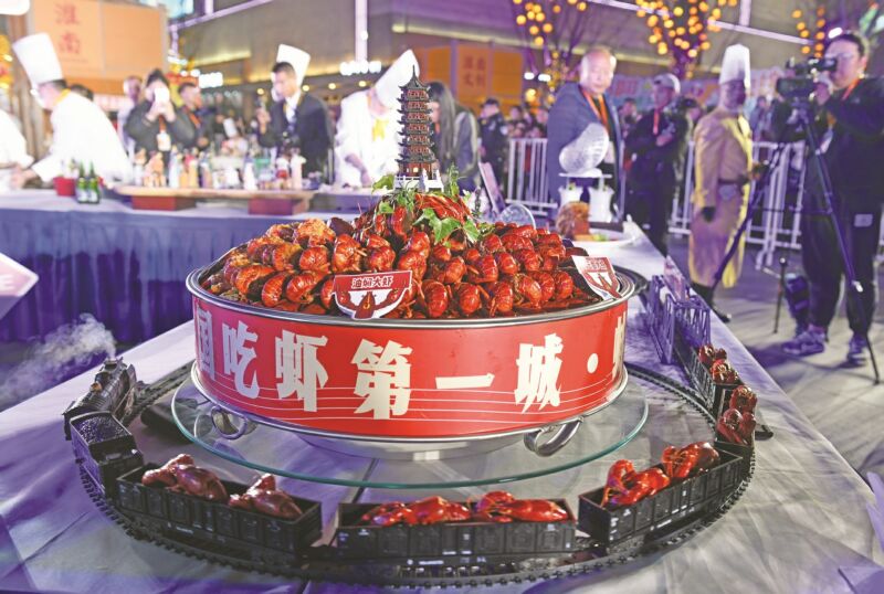 蚌埠市美食戰隊通過小火車托運大龍蝦特色美食,講述蚌埠城市故事。