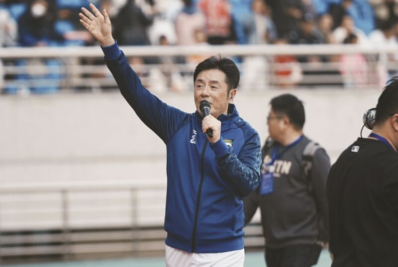 2025樂動力淮南高校足球嘉年華賽場中國明星足球隊隊員黃格選演唱成名曲。