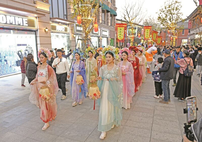 淮南市主會場舉行“楚韻迎賓,鐘鳴入城”特色美食戰隊入城儀式,吸引游客觀看。