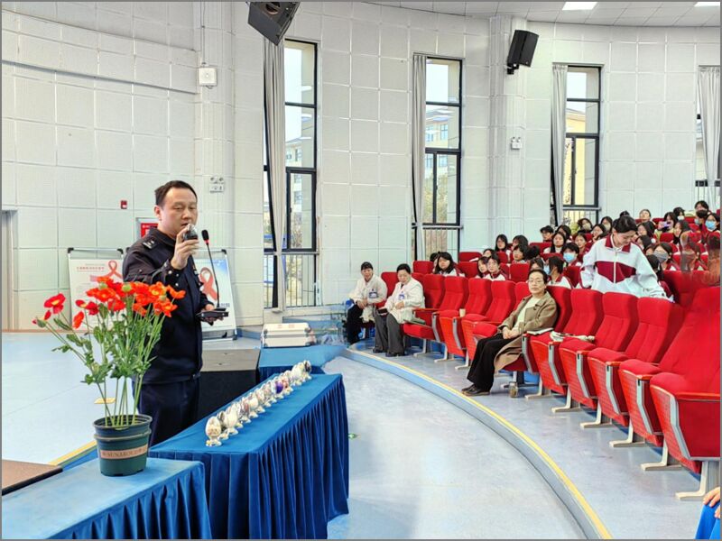 活動現場,市第四人民醫院藥物維持門診的醫生從專業醫學角度深入淺出地講解了艾滋病的傳播途徑、流行現狀、預防措施等。緊接著,來自市公安局禁毒支隊宣傳大隊的民警則通過真實的案例、直觀的圖片模型,向學生們揭示了各類毒品,特別是新型毒品對個人身心健康、家庭幸福和社會穩定的巨大危害。民警重點剖析了吸毒行為與艾滋病傳播之間的高危關聯,明確指出共用注射器吸毒和不安全性行為是導致艾滋病蔓延的重要推手,警示學生們必須從源頭上認清風險,樹立“拒毒”就是“防艾”的第一道防線意識。