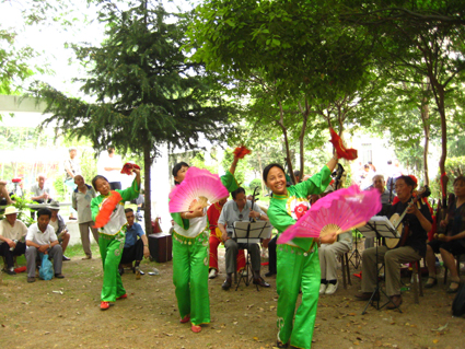 圖:來自市老齡藝術協會龍泉藝術團的老人們正在激情演出