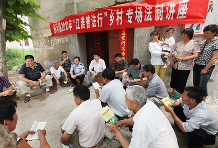 6月24日,淮南市大通區(qū)洛河鎮(zhèn)普法工作人員在該鎮(zhèn)林巷村現(xiàn)場解答村民法律咨詢。大通區(qū)洛河鎮(zhèn)為扎實開展“江淮普法行”活動,更好地普及農村法律知識,提高農民群眾法律意識,創(chuàng)造平安、和諧鄉(xiāng)村,深入農村聯(lián)合開展“江淮普法行”進鄉(xiāng)村活動。