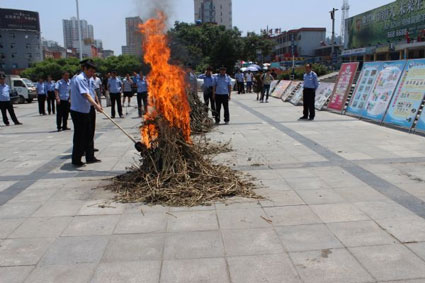 6月3日上午,在人來人往的淮南市火車站站前廣場,市公安局隆重展開“虎門銷煙”紀念日禁毒宣傳活動。活動中,民警現場銷毀春季鏟毒行動中收繳的3000余株罌粟,來往市民為此連聲叫好。
