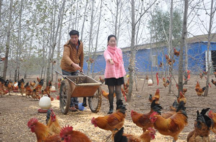 他的決定遭到了不少親友的反對,有的甚至對他冷嘲熱諷,可孫倫洋卻說,現在圖的是眼前的利益,對子孫來說無益,而國家在環境保護方面力度逐年加強,投資的項目早晚要關停。晚停不如早停,早做轉型的準備。投資的錢打了水漂,購買的機械設備閑置在家,該如何轉型呢?孫倫洋轉而一想,自己不是還有80畝荒地嗎,不如發展特色農業。他首先在荒地里開辟了兩畝油菜,搭起了葡萄架,但總不見生長,于是請教農技專家,發現荒地的土主要成分是細灰,沒有“營養”。于是,孫倫洋又開始搗鼓起土雞養殖,利用土雞糞便化成土壤的養料。他引進了當地的麻黃雞和“淮南王”兩個品種3000余只,在荒地上進行散養。“別人用的都是飼料,出欄快,但肉質不好吃,我就不這樣做。”孫倫洋就地取材,在當地收購玉米小麥作為飼料,平時有空他就趕雞上樹,讓土雞充分地活動起來。別人養的雞半年出欄,而孫倫洋養的雞卻至少要等到一年半以上才能出欄,每只雞平均4斤多重,肉質鮮美,在市場上供不應求。