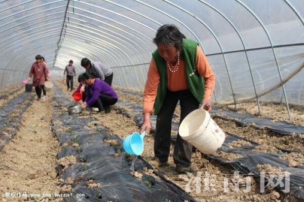 3月22日,在壽縣張李鄉時寺村的安徽富瑞德農業種植有限公司的扶貧蔬菜大棚里,貧困戶時培平正和其他農民一起忙著栽種辣椒苗,他一邊干活一邊高興地和淮河早報、淮南網記者說:“在這里上班不少掙錢呀,我們今年就能脫貧了!”