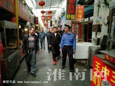 隨后,田家庵區城管行政執法局趕到商貿美食街聯合物業對現場進行再次走訪和整改。