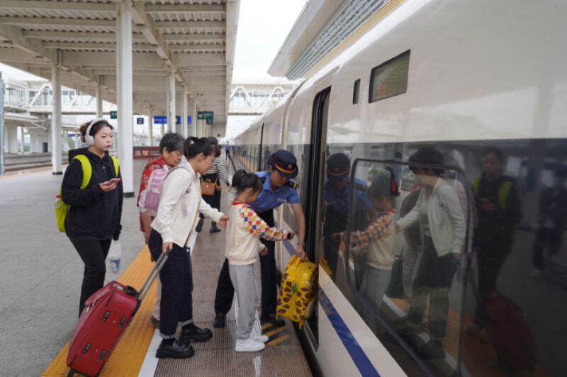 據車站工作人員介紹,為確保旅客出行安全有序,淮南鐵路部門進一步強化了旅客運輸組織,各客運車站根據當日票額預售、重點車次、高峰時段等情況,合理安排安檢查危、進站檢票、站臺組織等作業力量,加強進站口、安檢口、天橋、站臺等安全關鍵部位的疏散引導;充分發揮“舜”系列雷鋒服務站作用,推出“愛心五色包”“彩虹便利貼”“銀發專窗”等服務,滿足不同旅客出行需求;增配鐵路志愿者30余名,做好咨詢解答、安全防護、重點旅客幫扶等服務。同時,車站對旅客購票情況進行動態監控,隨時根據旅客出行變化及時調整列車運能和開行計劃。