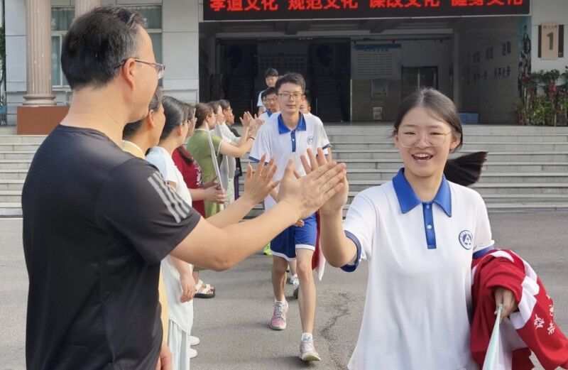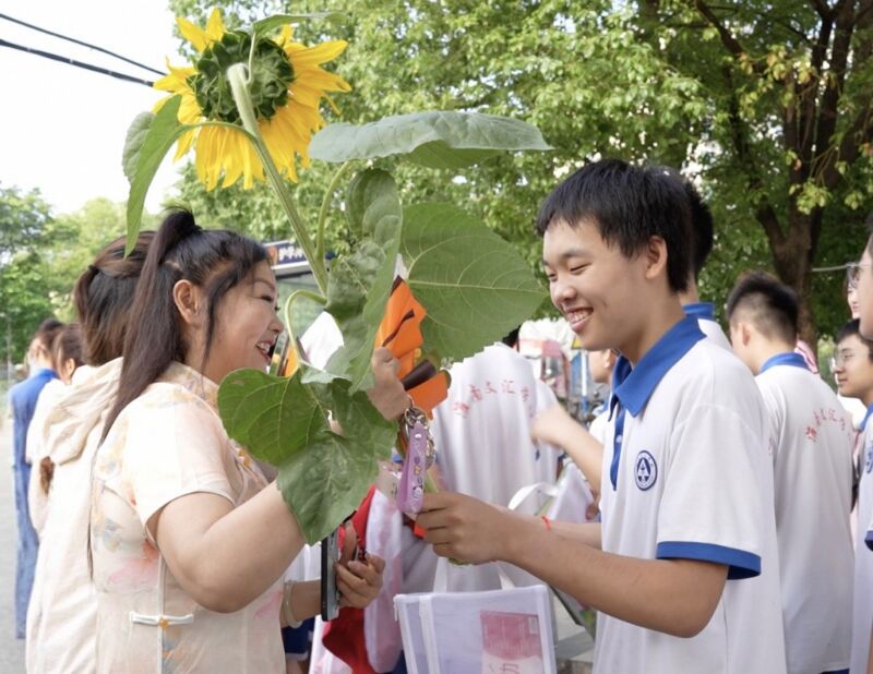 “文具再確認一遍,準考證收好!”老師輕聲提醒,目光逐一掃過學生證件,對每一個細節進行檢查。老師們伸出手掌,以清脆的擊掌傳遞信心:“穩住,沒問題!”“好好審題,等你們凱旋!”溫暖的笑容和簡短的叮囑,如微風般拂過略顯緊張的臉龐。還有家長特意備好手寫祝福卡片,悄悄裝進孩子的口袋——“從容落筆,靜待花開”,紙短情長,字字暖心。家長或踮腳張望,或輕拍肩膀,所有牽掛盡在不言中。