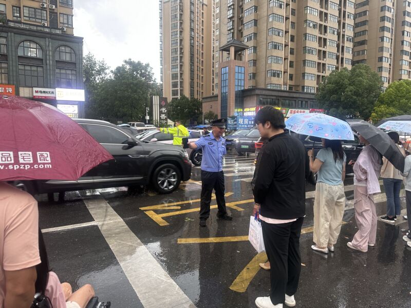 危急時刻,市公安局田家庵分局民警迅速行動。他們在積水中全力疏導交通,指揮車輛有序通行,引導送考車輛安全停靠,有效避免道路堵塞。此外,他們還主動護送考生。遇到被困考生,他們立即上前,撐傘遮雨助力考生安全上車;對于行動不便的考生,更是細心攙扶,確保其順利避雨,平安抵達安全區域。濕透的警服、堅定的步伐,構筑起了風雨中的安全防線,也贏得了考生和家長一致的稱贊。