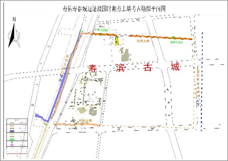 壽縣壽春城遺址戰國時期夯土墻考古勘探平面圖
