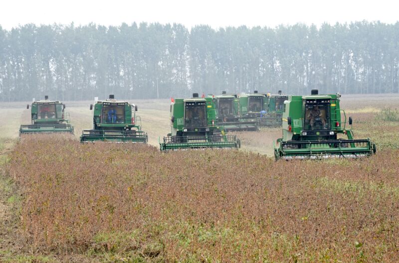 針對近期陰雨天氣對秋糧收獲帶來不利影響,我市加快秋糧搶收搶烘進度,確保秋糧豐收到手。圖為10月11日,省農(nóng)墾集團壽西湖農(nóng)場有限公司組織機械搶收大豆。