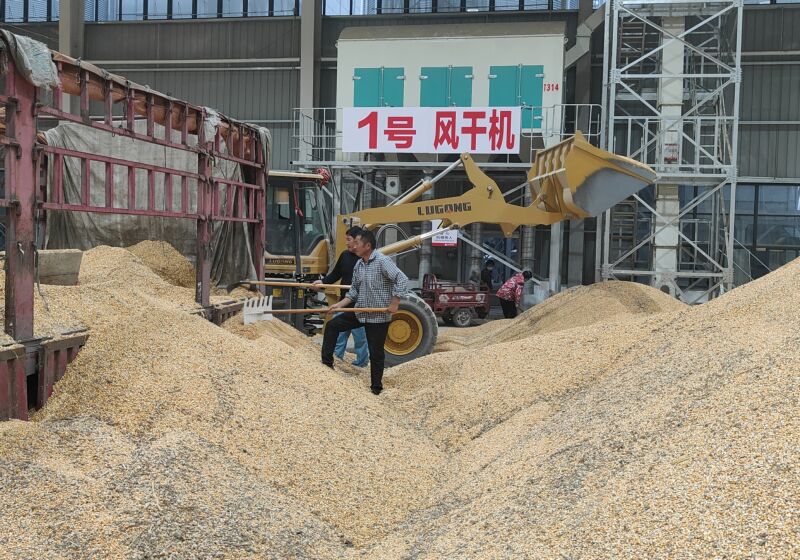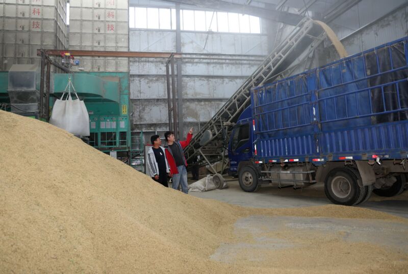 10月9日,鳳臺縣桂集鎮勇敢村五斗谷農業種植專業合作社全力收購秋糧。 (記者 廖凌云 攝)