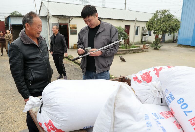10月13日,淮南市永超工貿公司對附近農戶的秋糧進行及時收購。  (記者  張越 攝)