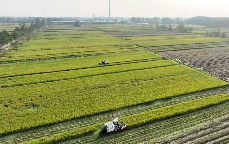 10月11日,鳳臺縣朱馬店鎮徐橋村種糧大戶在搶收水稻。 (通訊員  李巧玲  攝)