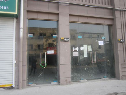 3月3日,淮河早報、淮南網記者來到碧海新城4號樓,劉女士反映的門面房處。淮河早報、淮南網記者看到108室門面房的玻璃門用一把鎖緊鎖著,在一旁的墻面上掛著一塊牌子,上面寫著“碧海淘寶街”“4棟商—108”等內容。