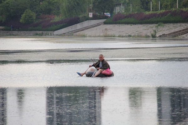 圖三:市民使用汽車輪胎在老龍眼水庫內(nèi)布網(wǎng)捕魚