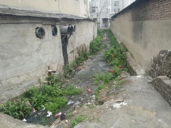 隨后,淮河早報、淮南網記者穿過建筑物之間的小道,在這一明溝北邊下游,也有一小段明溝,有三四米長。但這段明溝的情景令人作嘔和震驚,里面漂浮的滿是垃圾,排水泄洪溝渠儼然成了一條垃圾溝。淮河早報、淮南網記者看到,在這段明溝里積了一堆紅色的、黑色的塑料袋包著的垃圾,溝渠水底也沉積了一些白色的垃圾,而在溝渠邊上的一處墻角處則堆積著破席子、衣物等垃圾。這些堆積的垃圾明顯阻礙著正常排水,如果不及時清理,將給汛期埋下隱患。