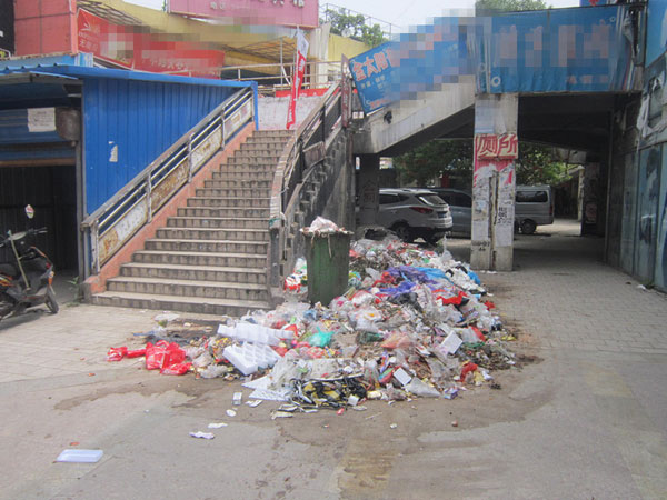 “附近的人都往這里扔垃圾,而垃圾就在我們店鋪旁,天氣這么熱,散發出一股股臭氣,太影響我們的生活和做生意了。”在此做生意的萬先生介紹說,他們這里原來有物業公司管理的,以前在店鋪旁還擺放個垃圾桶,每天有人來清理,現在物業公司沒有了,連垃圾桶也沒有了。