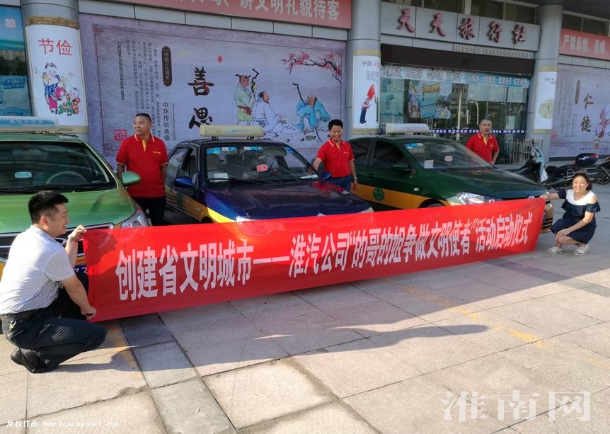 據淮南市淮汽出租車公司書記陳震向淮河早報、淮南網記者介紹,在這次爭創文明使者活動中,他們公司的309位出租車司機參加了啟動儀式。也是給全市的出租車司機帶個頭,在爭創文明使者活動期間,對未按規定統一著裝的司機責令停業進行教育培訓,對所有車輛的車內車外車容車貌也提出了要求。要求廣大司機清除車身上一些廣告,將破損的車輛維修等。