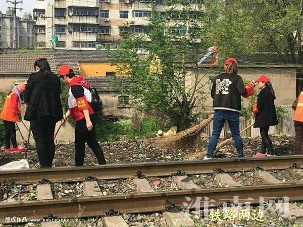 圖:志愿者正在清理沈巷鐵路兩旁的垃圾