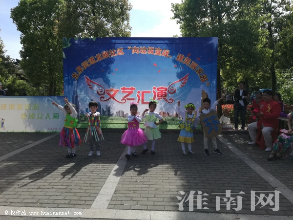 4月18日下午,在環山路老龍眼景區一處廣場上,由龍泉街道龍眼社區組織舉辦的“向垃圾宣戰 建美麗家園”文藝匯演正在精彩進行。舞蹈、戲曲、歌曲、詩朗誦、情景劇等,文藝節目形式多樣,內容精彩紛呈。十多個文藝節目接連上演,吸引了眾多市民游客駐足觀看,現場不時響起熱烈的掌聲。來自龍眼社區幼兒園的孩子們在老師的帶領下也參加了匯演,表演了弟子規武術操以及環保時裝秀等節目,向市民游客宣傳環保;春釉鐖、淮南網記者看到,演出現場還設置了多個宣傳展板,龍眼社區工作人員向市民發放《向垃圾宣戰 建美麗家園——致市民朋友的一封信》等,宣傳介紹“向垃圾宣戰 建美麗家園”的相關內容。
