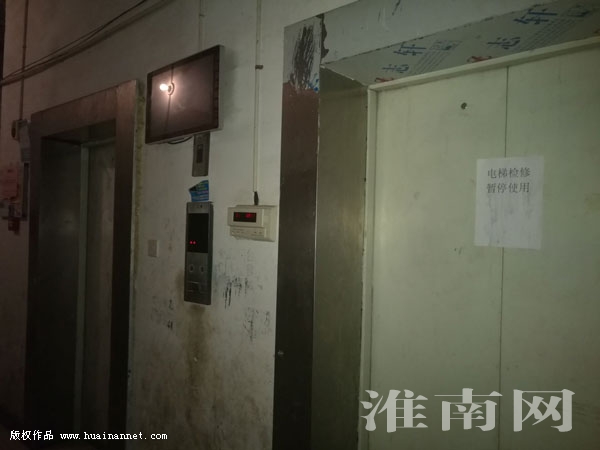 在李先生的指引下,淮河早報、淮南網記者來到8號樓一單元。在一樓電梯口,淮河早報、淮南網記者看到,兩部電梯的門上分別貼著一張紙,上面寫著“電梯檢修 暫停使用”。李先生介紹,當天下午,電梯維護公司工作人員才來對電梯進行檢查維修。在電梯口,淮河早報、淮南網記者看到,一位工作人員正在對電梯進行維修,一層一層地調試,排查問題。