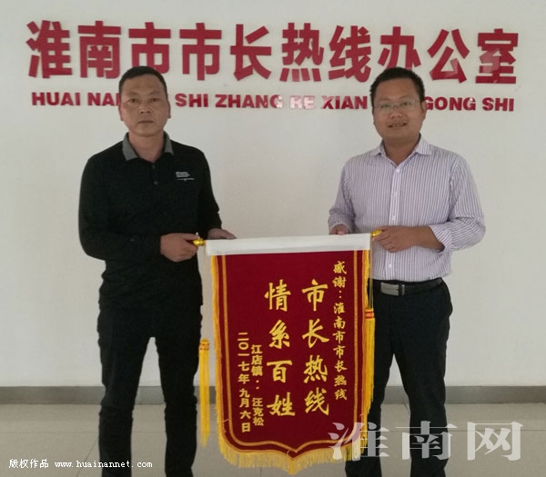 圖: 汪先生給市長熱線送來了錦旗