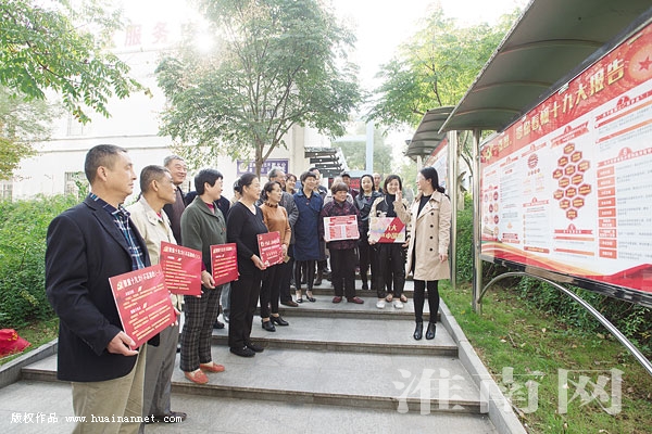 連日來,謝家集區社會各界黨員干部和廣大群眾掀起學習十九大報告熱潮。圖為望峰崗鎮靠山社區組織部分黨員群眾學習十九大精神。