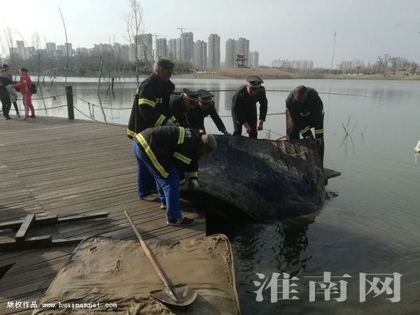 市舜耕山管理處管理人員和工人用鐵锨將這些海綿床墊挑起后,徒手將其一一拉上岸。由于這些海綿床墊比較大,浸水后又非常沉重,雖然只有四張,卻花費了半個多小時才清理完。淮河早報、淮南網(wǎng)記者看到,清理上來的海綿床墊已出現(xiàn)腐爛,并聞到其散發(fā)的陣陣臭氣。