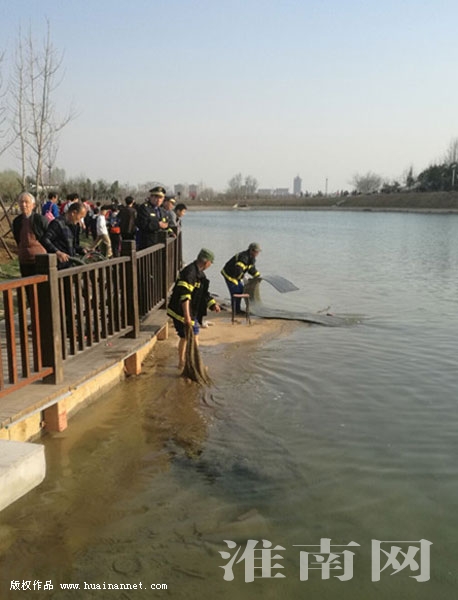 隨后,淮河早報、淮南網(wǎng)記者跟隨管理人員來到仙女湖。在仙女湖北岸,淮河早報、淮南網(wǎng)記者看到,在水中沉著的兩條約四米長、半米寬的黑色運輸皮帶十分顯眼。管理人員和工人將兩條運輸皮帶清理上岸,并抬上車運走。之后,管理人員又來到老龍眼水庫,對游泳者鋪在水中的毯子進行了清理。