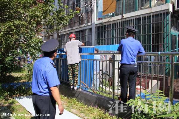 7月12日上午8時許,當淮河早報、淮南網記者趕到洞山新村時,田區城管行政執法局副局長廖繼宏已帶著30位執法人員在20號樓布控拆違。拆違現場圍觀了大量居民,洞山街道新村社區派出的數名城管志愿者和物業人員則在一旁配合勸導居民。由于20號樓有3家違章搭建了彩鋼瓦房,在拆違時,違建主要求3家一起拆,而其中有一戶沒有人在家。城管執法人員在取證后,在社區和物業的見證下,對3家采取了統一拆除行動,并對違建主進行耐心地勸導,宣傳相關法律法規,最終違建主沒有再阻攔拆違行動。