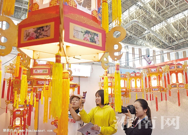 圖:市民在文博會現場欣賞潘集區民間藝人創作的淮河走馬燈,品味地方特色文化。(記者 陳崇韌 特約攝影 陳彬 編輯 湯寧)